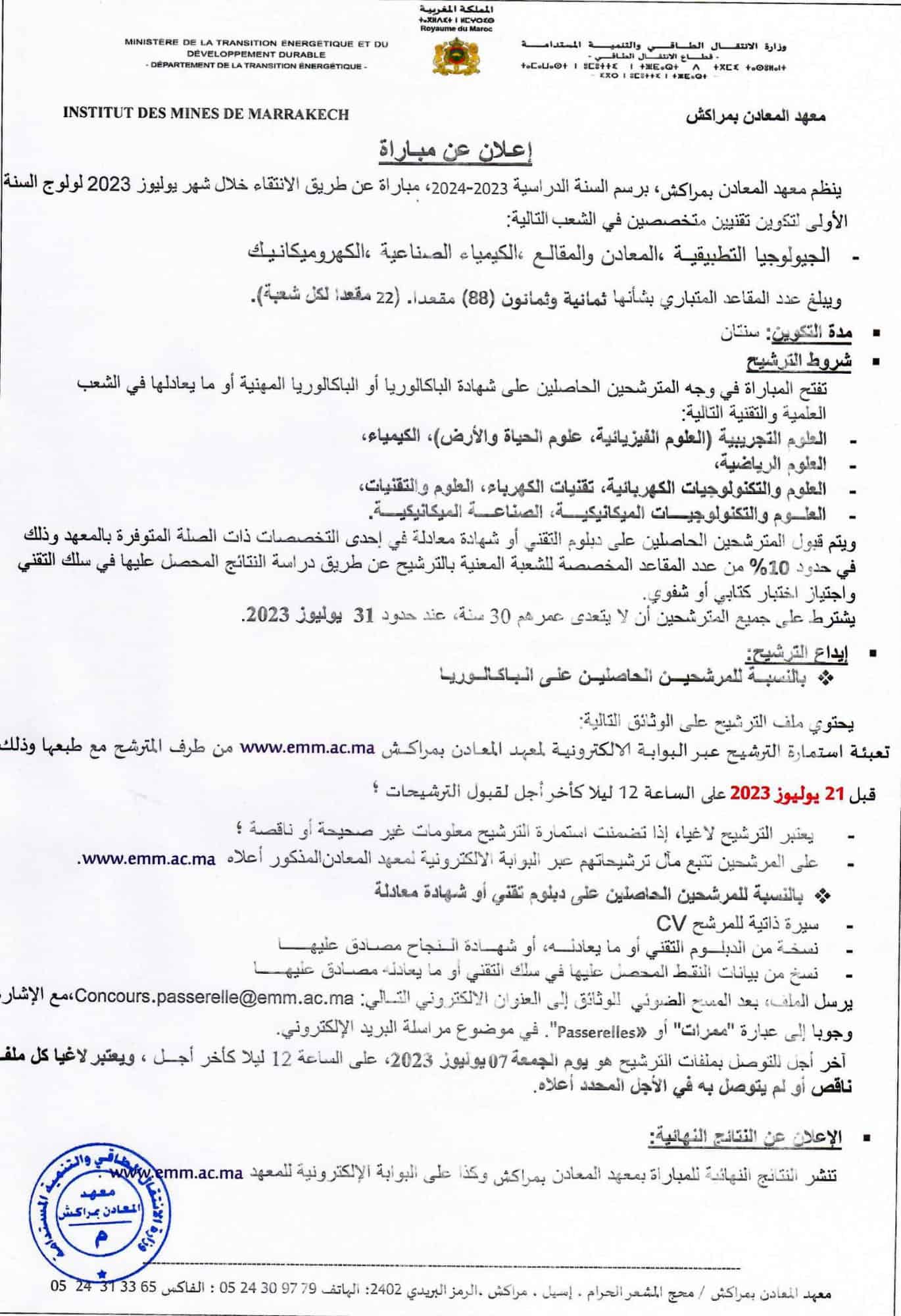 Inscription Concours IMM Marrakech 2023/2024, Concours d’Accès à l’Institut des Mines de Marrakech à travers la plateforme emm.ac.ma